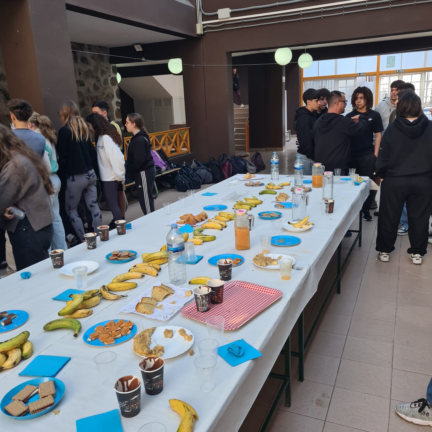 Nous avons été accueillis chaleureusement au lycée avec un bon petit déjeuner de bienvenue canarien, puis nous avons été reçus à la mairie et ensuite une initiation à des sports et jeux traditionnels canariens nous a été proposée.