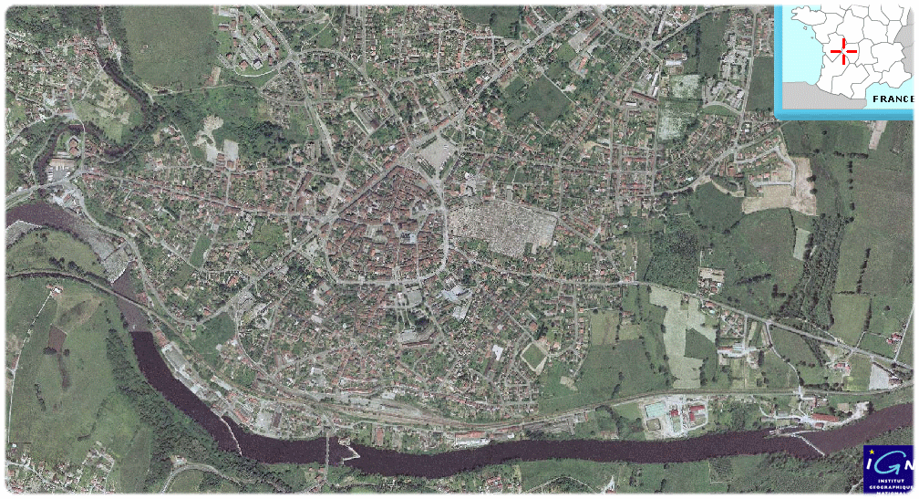 La ville s’organise autour d’un centre médiéval préservé, groupé autour de sa collégiale romane et possède de nombreux équipements culturels et sportifs : Ciné-Bourse, Médiathéque, Cyberbase, Pôle Culturel de la Mégisserie, plusieurs gymnases et un centre aqua-nautique, une salle des congrés, etc...