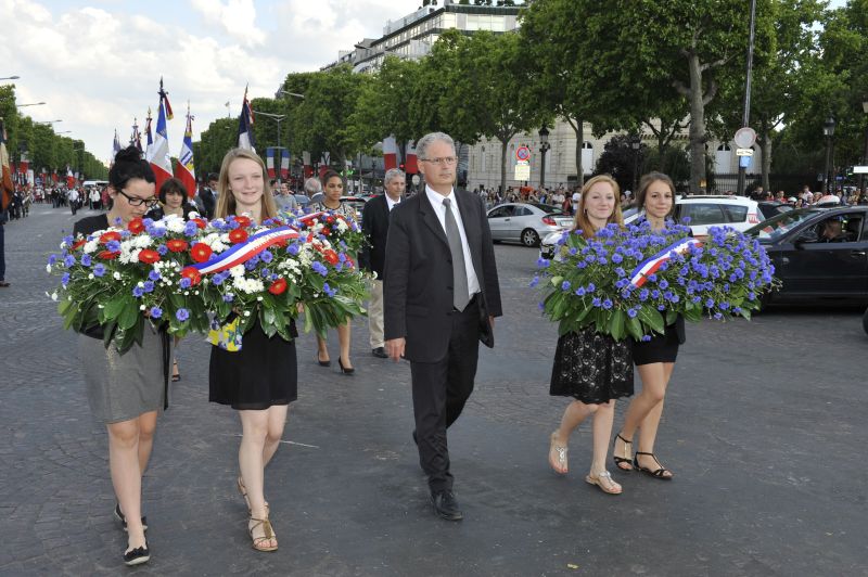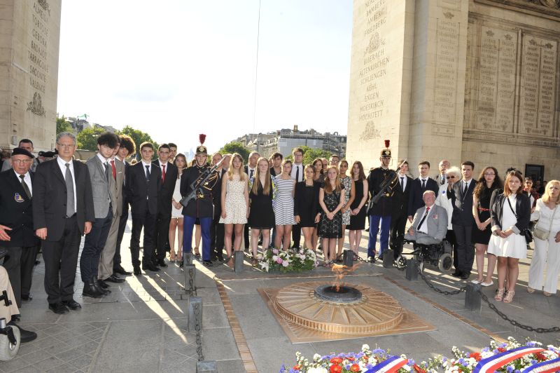 Pour les cérémonies du 14 juillet, notre établissement a été choisi par les PGIG Association des Plus Grands Invalides de Guerre et la FMIG Fondation des Mutilés et Invalides de Guerre pour les accompagner lors du ravivage de la flamme du soldat inconnu, au pied de l’arc de triomphe. Le président des PGIG, Monsieur Casal et Monsieur Morin, vice -président de la FMIG étaient venus présenter ce projet au lycée au mois de mai. Cette rencontre avait permis de désigner 25 élèves, tous élus délégués de classe ou du CVL, qui ont donc pu participer aux cérémonies et à leurs préparatifs.