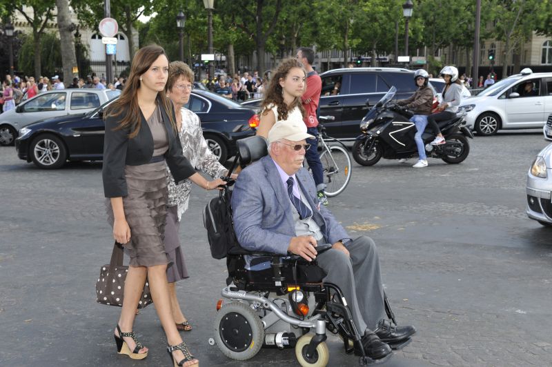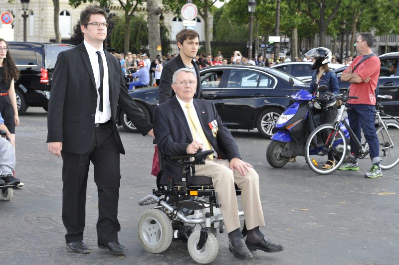 Le grand moment vient en fin d’après midi : il s’agit d’accompagner les invalides au ravivage de la flamme sous l’arc de triomphe : cela passe par une remontée des champs avec la musique militaire, une sonnerie aux morts, un dépôt de gerbe et un temps de recueillement. Un temps extrêmement fort et au dire de tous, très émouvant.