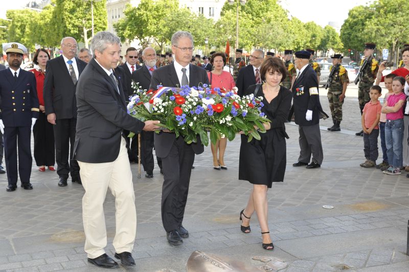 Le général Tuche était présent. Un immense drapeau français flottait au dessus de nos têtes tandis que le soldat inconnu représentant tous les combattants français n’était plus qu’à un mètre de nos pieds.