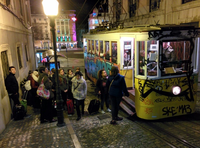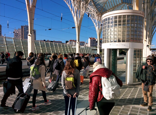 Après un rapide pique nique nous avons pris le train depuis une autre gare pour Lisboa, la capitale. Amelie nous a fait faire le tour du parc des nations, en bordure du Tage. Ensuite, direction en métro vers le centre de Lisbonne pour l’auberge de jeunesse, à la limite de Baixa et du Chiado, avec vue sur le château Sao Jorge et à 500 mètres de la place du commerce.