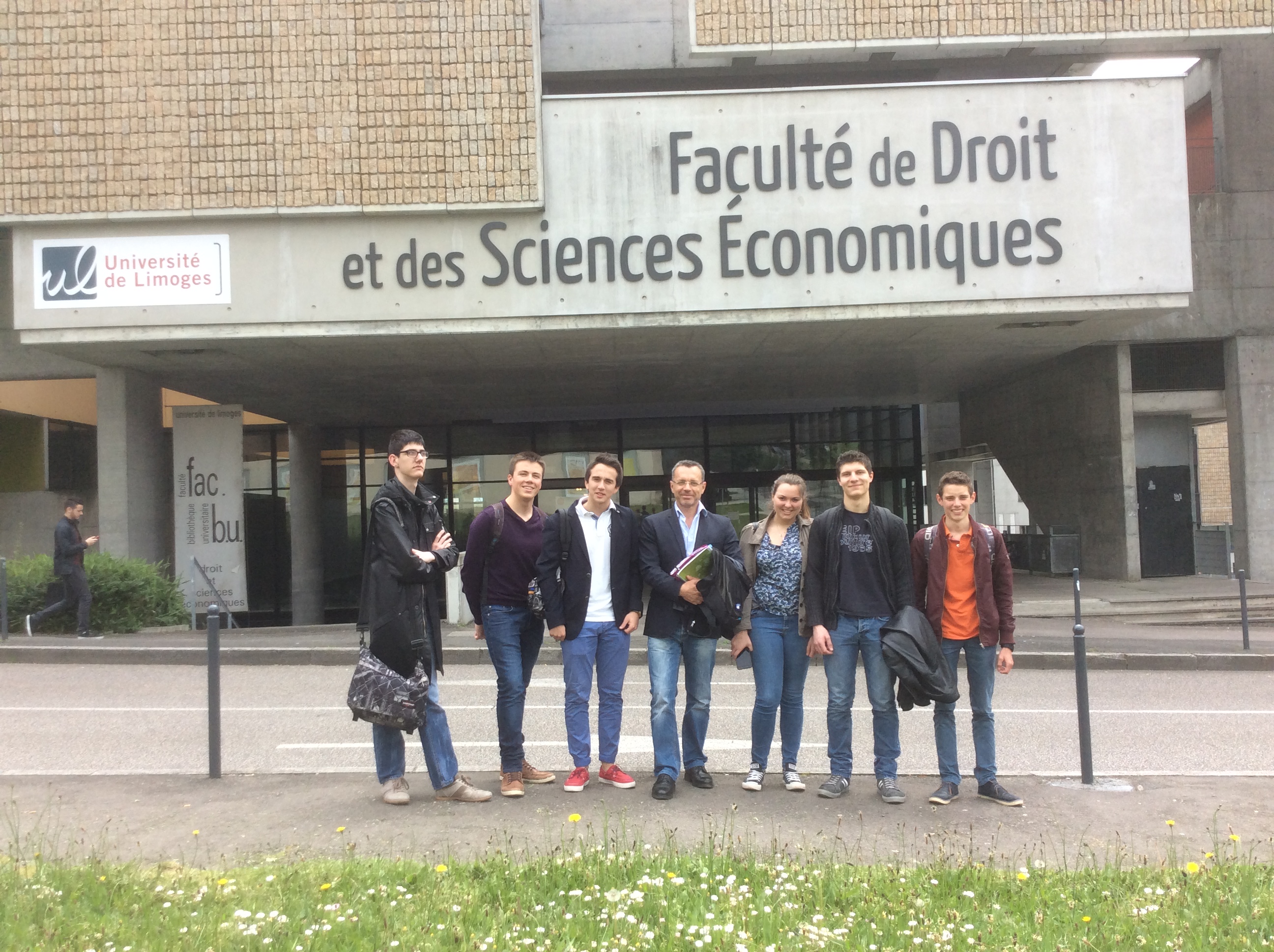 Mardi 17 mai à 14h00, Eva Fayemendy, Corentin Béchu, Louis Faurent, Cédric Henrard, Thomas Lisowski, et Yann Barroul, élèves de terminales ES spécialité Economie Approfondie, se sont rendus à la Faculté de Sciences Economiques de Limoges. Ils ont présenté leurs travaux de recherche sur la globalisation financière et la crise des subprimes devant Mesdames Lepetit et Mounet, professeures d’Université. Ce travail de recherche réalisé tout au long de l’année scolaire a été proposé et encadré par leur professeur de SES, Monsieur Nugues. L’objectif était d’intégrer dans le cursus de lycéens une démarche de poursuite d’études supérieures avec les exigences que cela suppose. L’auditoire fut enthousiaste face à la qualité des productions et des exposés et n’a pas manqué de souligner les performances comparables à certains travaux de master 1. Des questions bienveillantes et des remarques constructives de Mesdames les professeures d’Université leur ont permis aussi d’enrichir leurs connaissances et d’expliquer leur démarche. La rencontre s’est ensuite poursuivie par une visite de la Faculté et du LAPE (Laboratoire d’Analyse et Prospective Economique) qui a mis en évidence l’enseignement d’excellence dispensé à l’Université tant au niveau des contenus que de la diversité des masters offerts ouvrant sur de réelles opportunités professionnelles. L’intérêt et l’accueil de l’Université furent remarquables et cela donnera surement lieu à de nouveaux projets à l’avenir.
