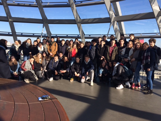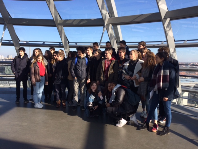 Nos lycéens sont enfin arrivés ce matin à Berlin... sous la neige ! À peine descendus du bus, ils ont enchaîné sur leur première visite : le Reichstag.
