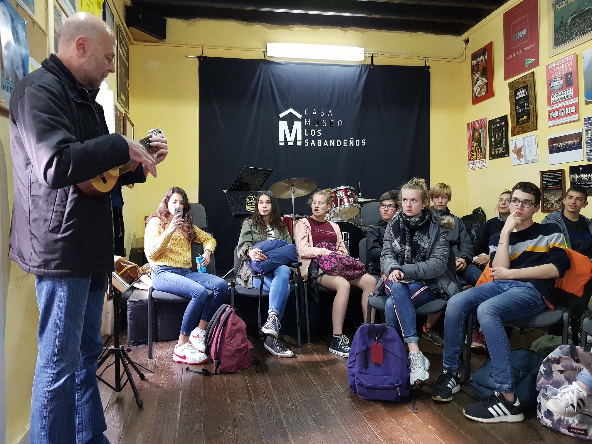Hier, mercredi, nous avons pu découvrir la ville historique de San Cristóbal de la Laguna, classée au patrimoine mondial par l’UNESCO. Après une visite guidée, en espagnol, les élèves ont eu le privilège de faire la connaissance d’un membre du groupe de musique folklorique et traditionnelle "Los Sabandeños", mondialement connu et nommé aux Grammy Awards, et ont même pu s’essayer à la pratique de quelques instruments typiquement canariens. Enfin, ils ont profité d’un quartier libre pour flâner et faire quelques achats.