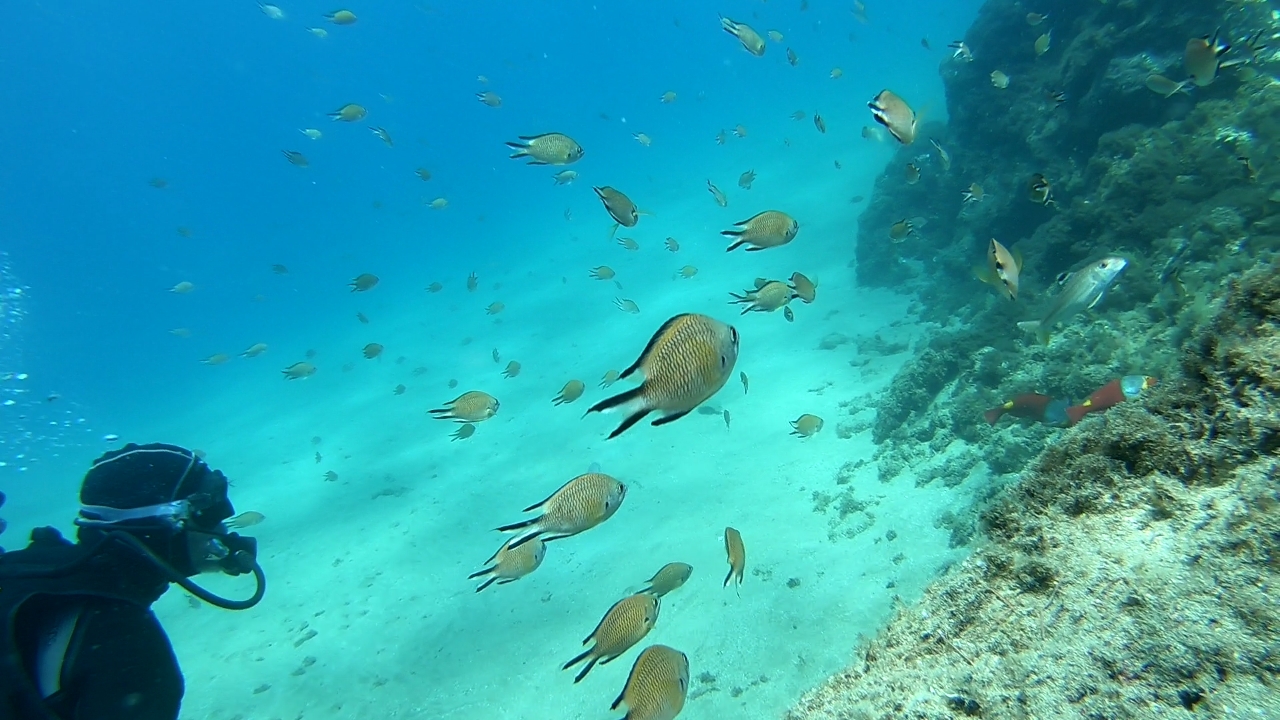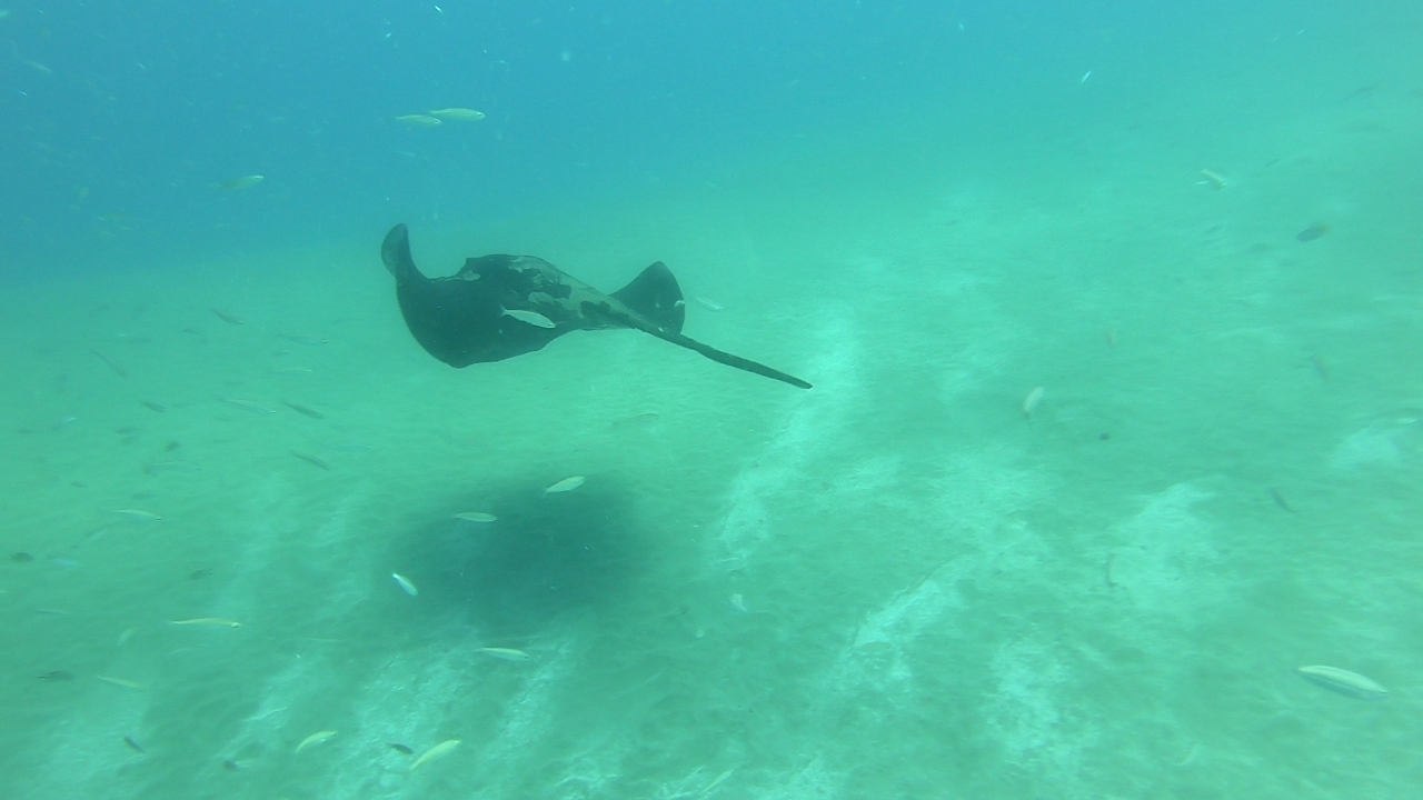 Le mercredi 8 mai, après un bon petit déjeuner à 8h et un chargement des camions à 8h25, nous partons à la playa chica de Puerto del Carmen pour 2 plongées qui demanderont plus d’effort que prévu à cause d’un petit courant. Si c’était entraînement et perfectionnement pour les 2 élèves passant leur niveau 2, c’était exploration pour les autres plongeurs. En vue : des bancs de barracudas, des castagnols, des crabes araignées, des flabelines de multiples couleurs, des poissons trompettes et perroquets, mais les plus grosses découvertes du jour furent un requin ange, un bel hippocampe et une immense raie pastenague de plus de 2m de large !