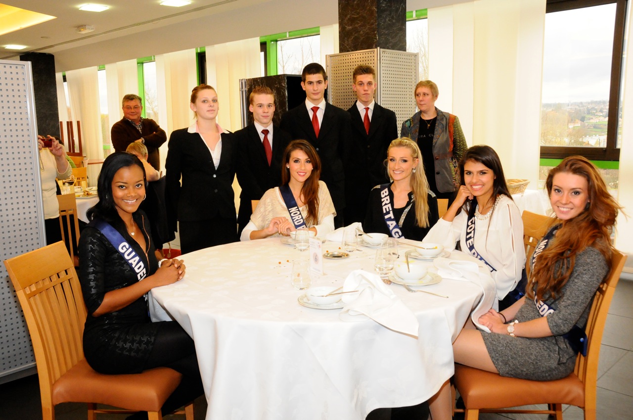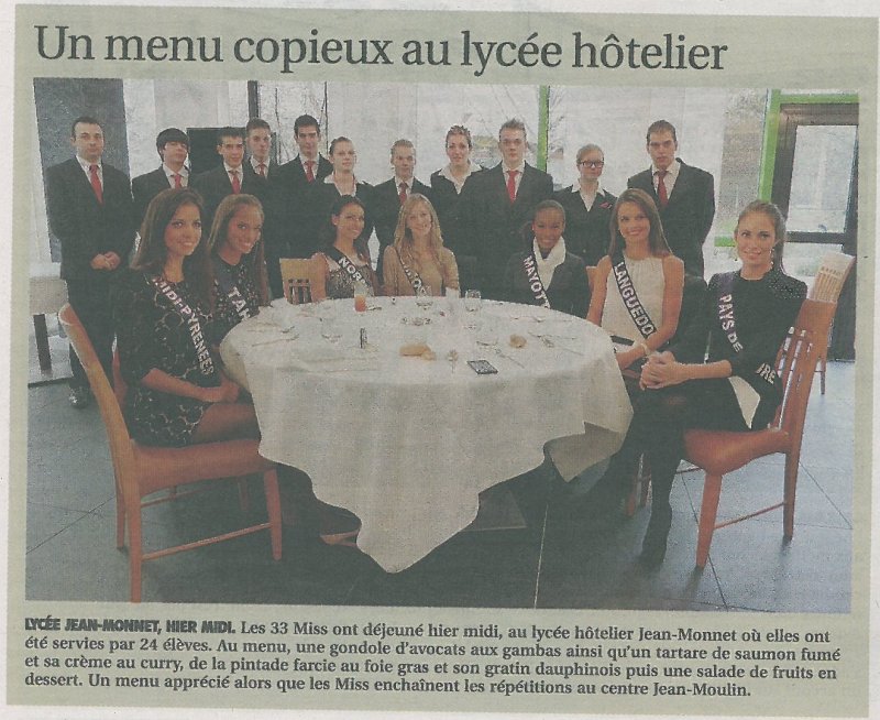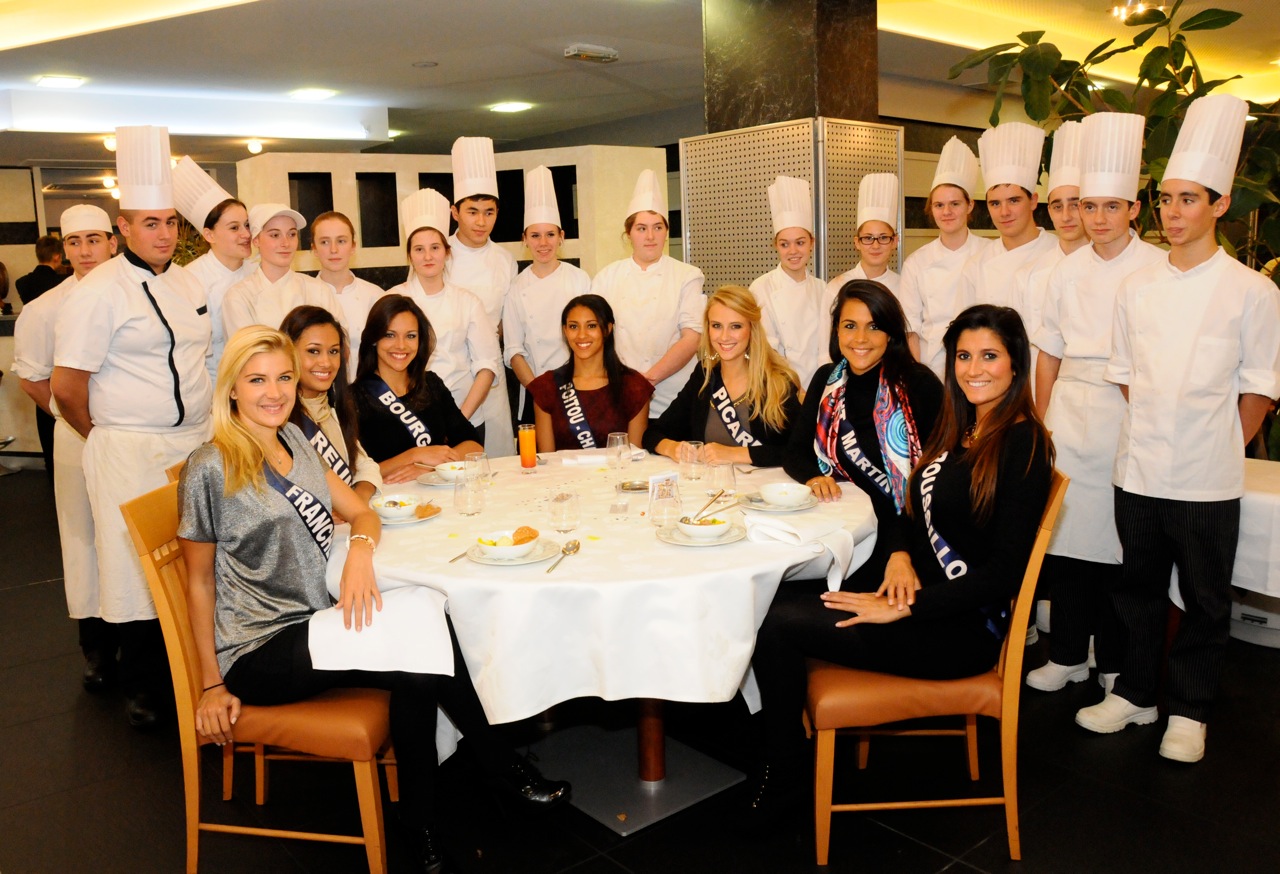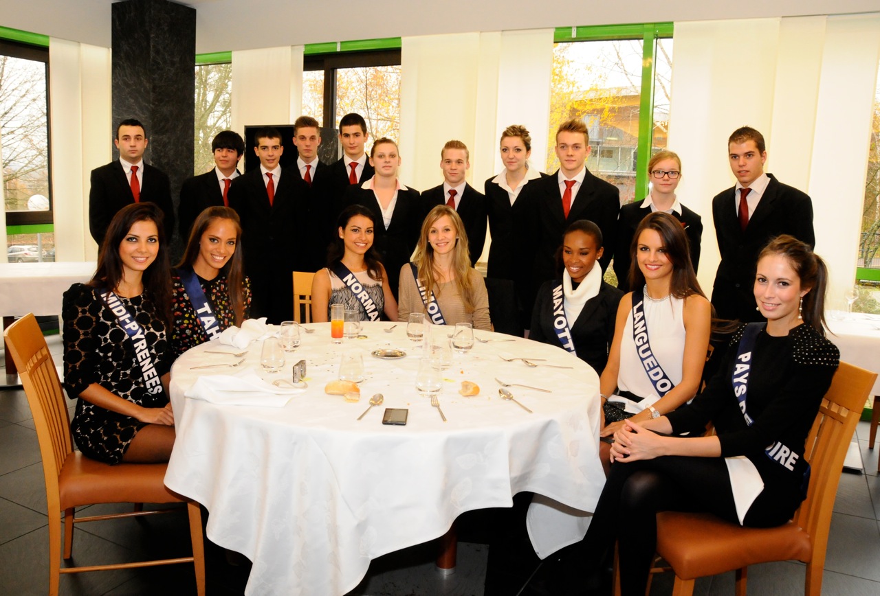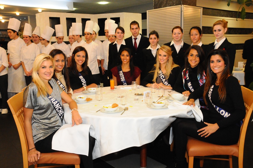 Entre deux répétitions au Zénith tout proche, les 33 candidates au titre de Miss France 2013 se sont accordé une pause pour déjeuner au "Jardin des Mets", le restaurant d’application du Lycée Jean Monnet.