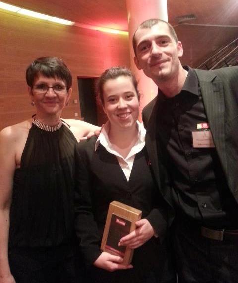 Maeva Vergnaud entourée par son professeur Sandrine Beldio et Maxence Moyaerts, son coach pour la grande finale