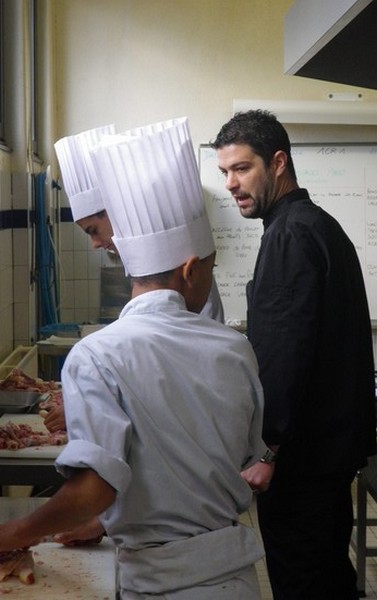 - le LUNDI 12 OCTOBRE, en partenariat avec les Logis, Jean-Pierre Waldbauer et Nicolas Fritsch [l’Auberge de l’Etang, Cieux] sont venus partager les fourneaux avec les élèves de 1ère Bac Professionnel lors d’un déjeuner servi aux convives du restaurant d’application.