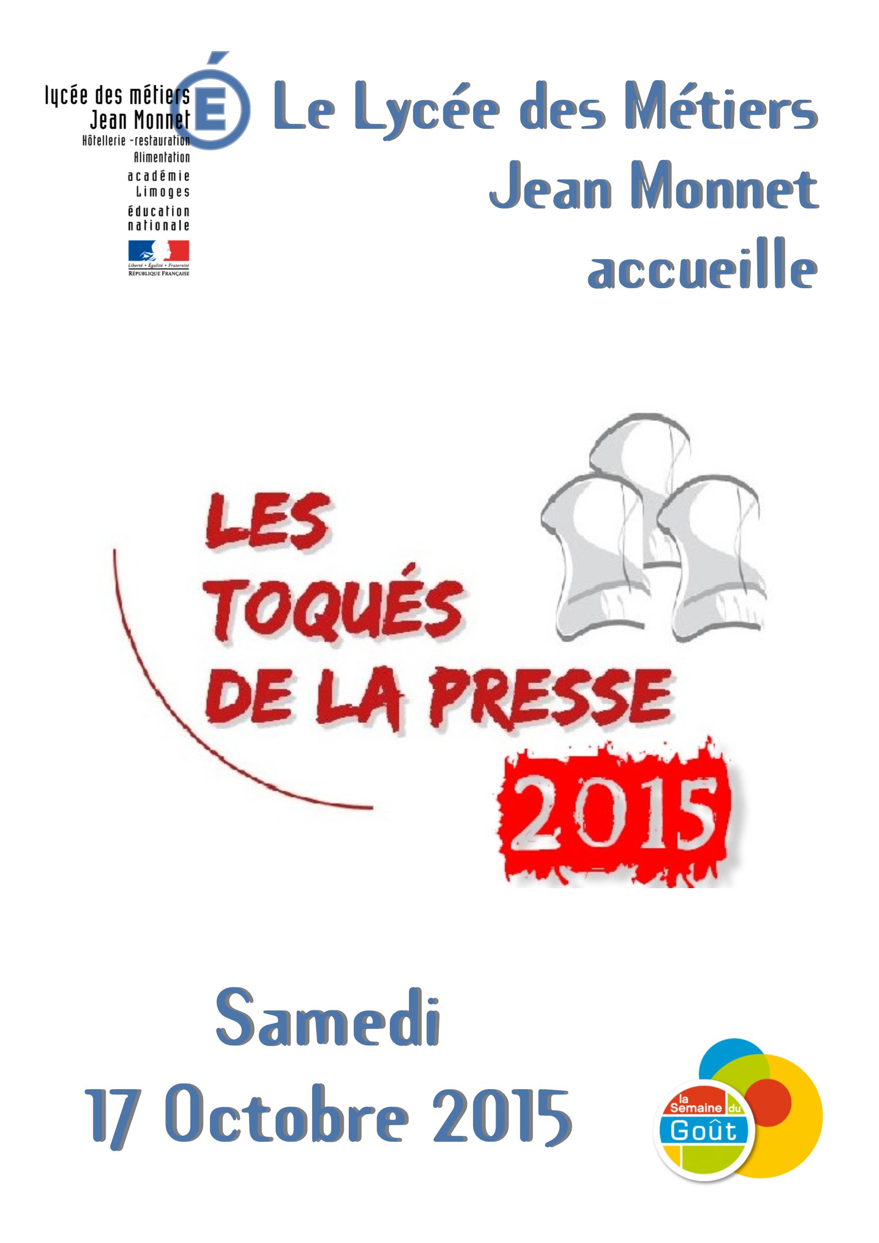 Le concours de cuisine organisé par le Club de la presse en partenariat avec le lycée Jean Monnet de Limoges, intitulé "Les Toqués de la presse" a eu lieu le samedi 17 octobre 2015 dans les cuisines du lycée.