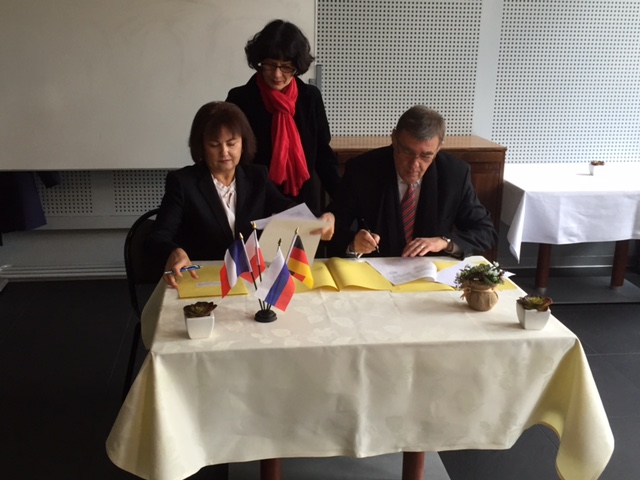 Les jeunes russes sont accompagnés par la Directrice du lycée technologique et Professionnel d’OBNINSK, Madame Nataliia KOLODIAZHNAIA et Monsieur CHADELAS, proviseur du lycée Jean Monnet a profité de sa présence pour signer le renouvellement de la convention liant les deux établissements.