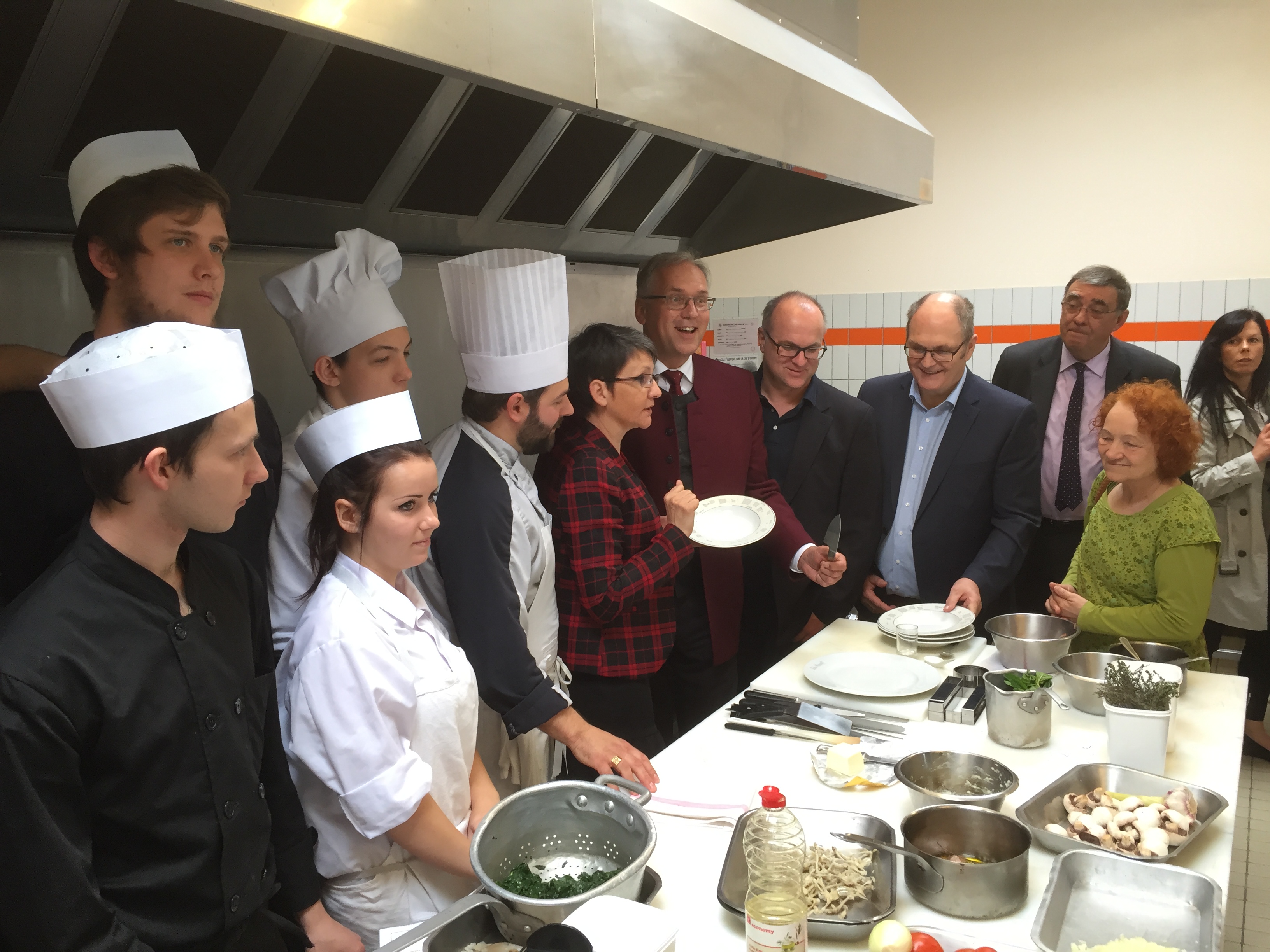La visite s’est terminée par un déjeuner préparé et servi par les élèves de Terminale professionnelle Cuisine et Service en présence de Madame Huguette TORTOSA, Conseillère Régionale de la nouvelle grande région.