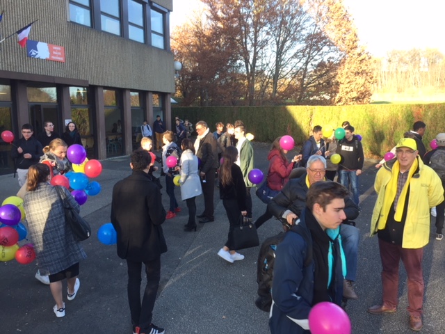 - Un lâcher de ballon organisé en présence de Messieurs RIBIERE et CIBOT a conclu les actions du lycée Jean Monnet en faveur de cette oeuvre caritative.