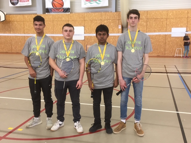 Badminton : Champion départemental et académique G et F des LP. Qualifié au Championnat de FRANCE G et F à Voiron.