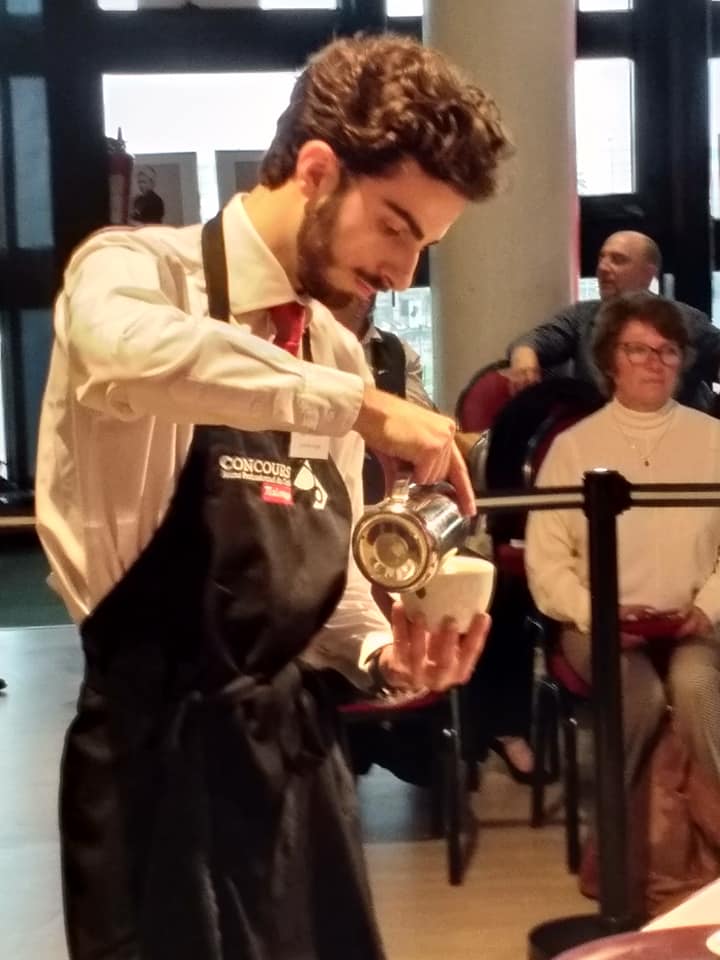 Hugues Artiglonde,étudiant en 2ème année de BTS Hôtellerie Restaurant était qualifié pour la finale nationale du Concours Malongo Jeune Professionnel du Café à Nice les 4 et 5 avril 2019.