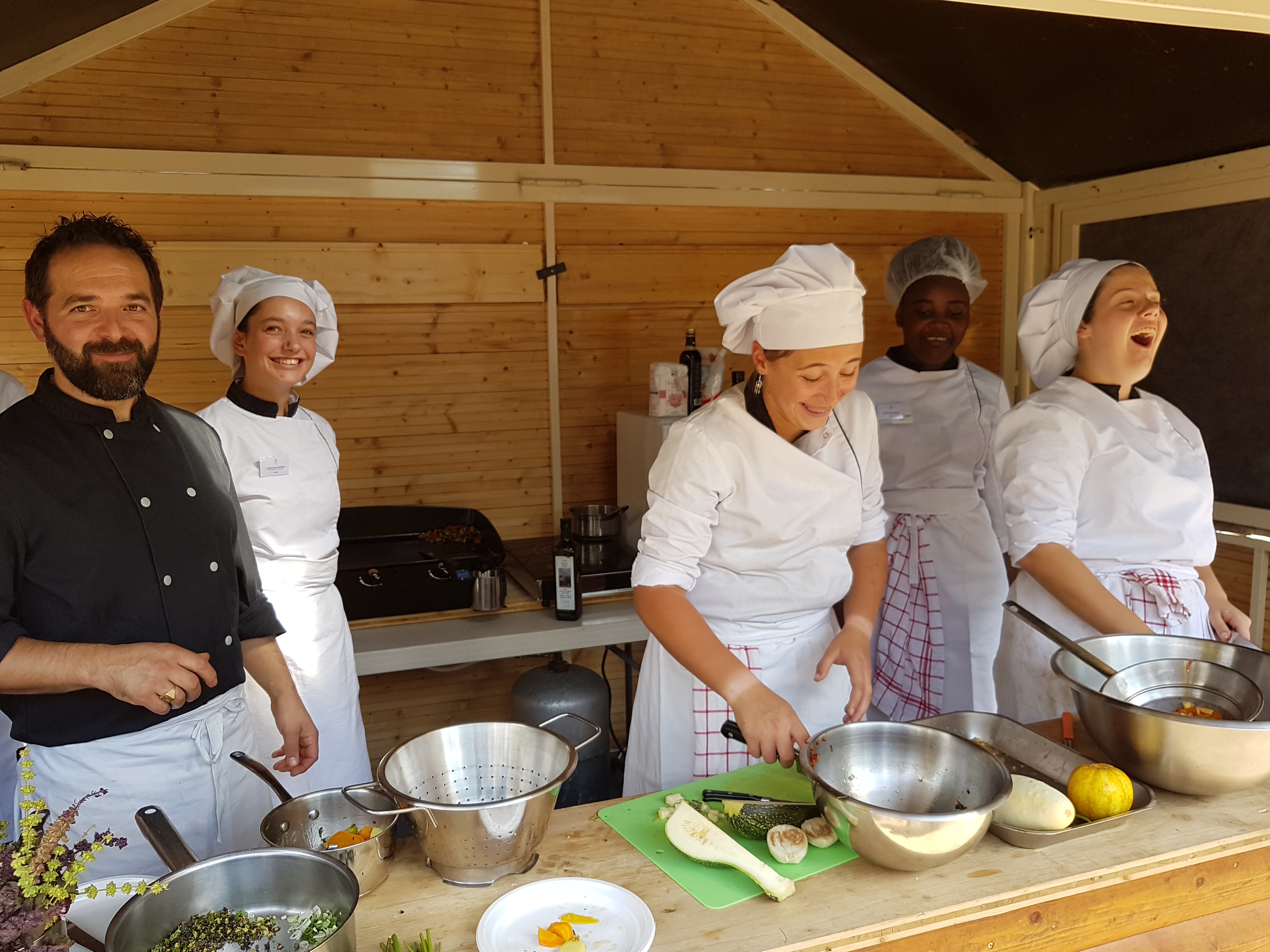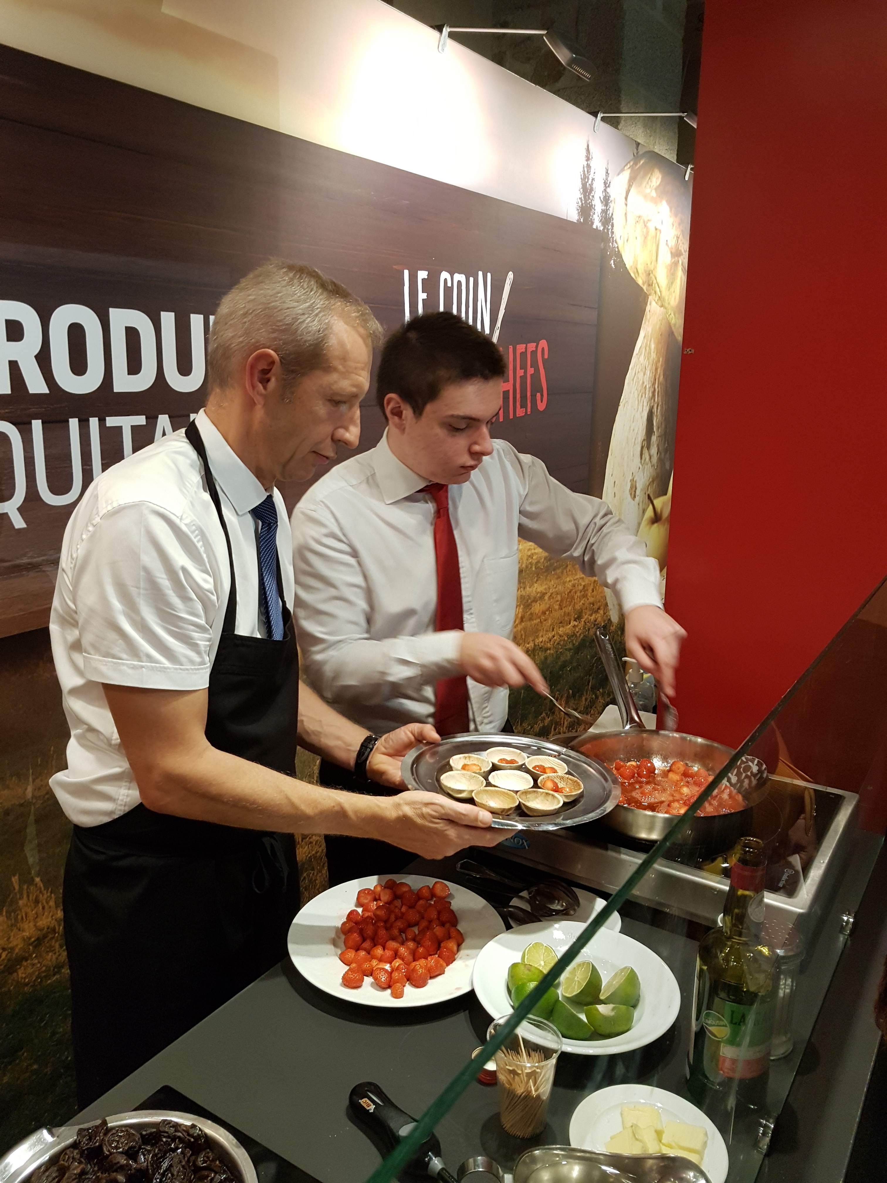 Outre des démonstrations réalisées dans la galerie des hospices ainsi que dans le potager géant mis en place devant l’hôtel de ville, nos élèves ont assisté salle Augustoritum les chefs invités dans la réalisation de recettes.