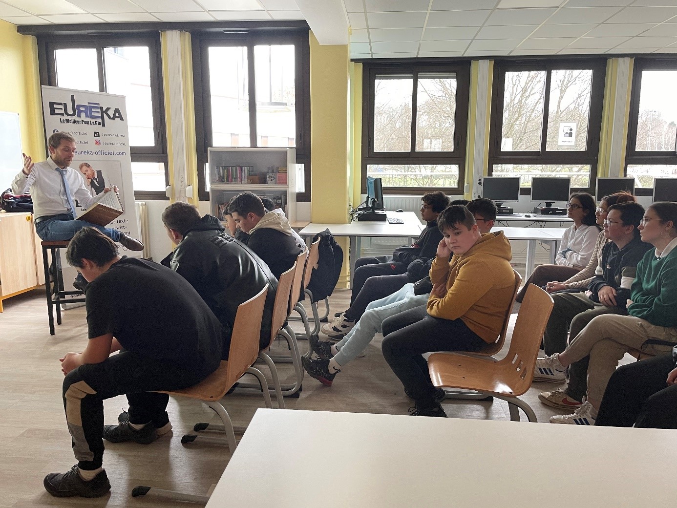 Jeudi 26 janvier, les élèves de 3ème Prépa Métiers ont rencontré le slameur Eurêka, de son vrai nom Olivier Tonnelier, au CDI du lycée.