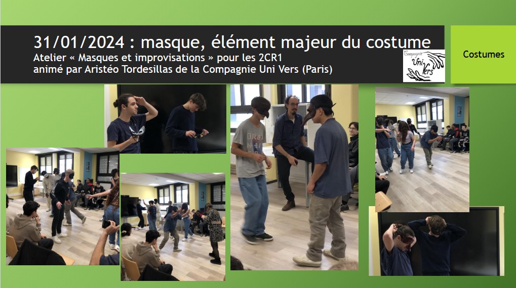 - Concourir à l’élaboration d’une prestation et d’une mise en scène autour de la Commedia dell’arte ;
