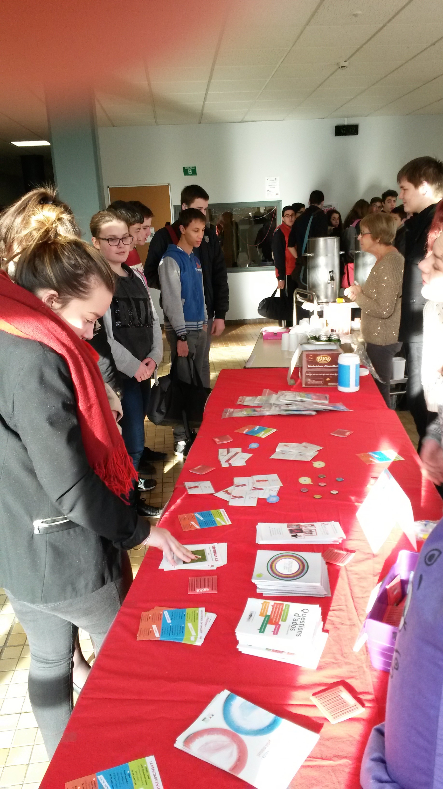 A l’occasion de la journée mondiale de lutte contre le SIDA, le service infirmier du lycée Jean Monnet a organisé, comme tous les ans, un café branché afin de sensibiliser les élèves contre cette maladie.