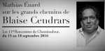 Le Jeudi 15 septembre 2016 s’ouvrent pour quatre jours les 11èmes Rencontres de Chaminadour. Mathias Enard nous amène Sur les grands chemins de Blaise Cendrars à l’occasion de cette Onzième édition des Rencontres, qui s’articulera autour de conférences, tables rondes, projections et lectures en présence d’écrivains, d’universitaires, mais également, de critiques, de musiciens...