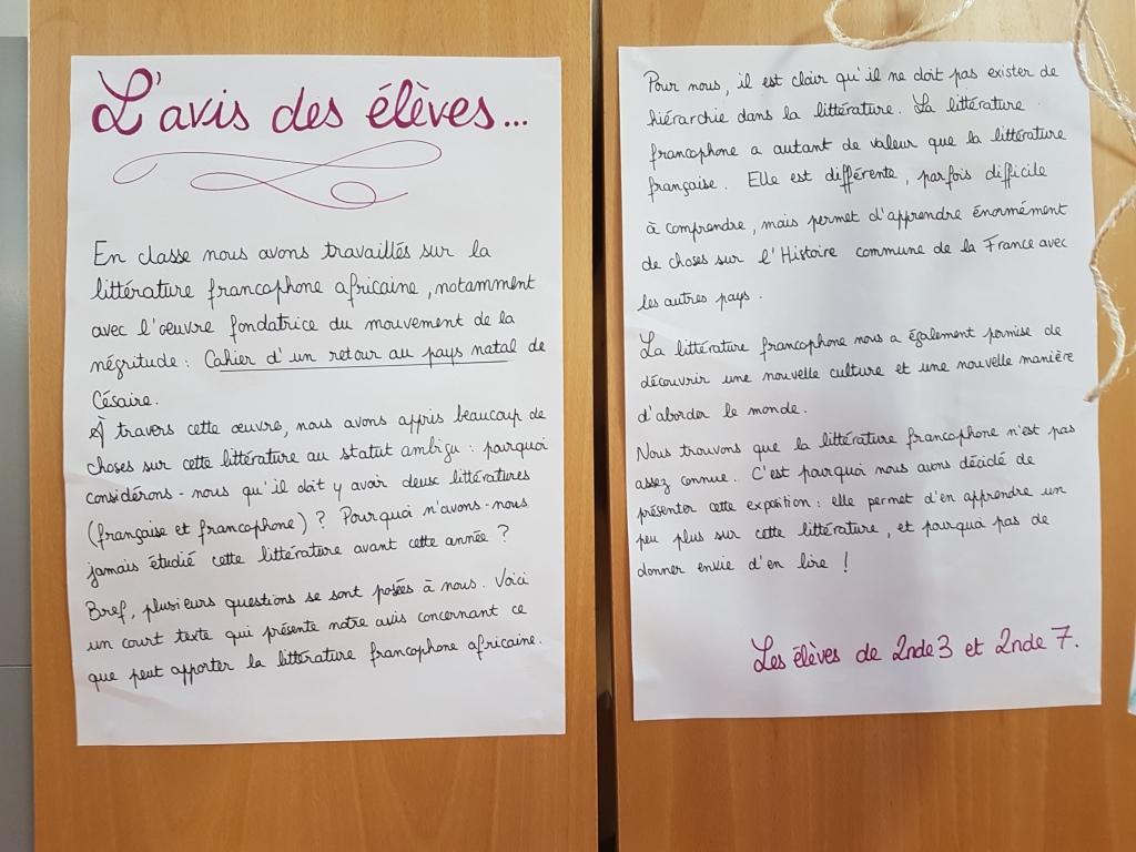 Cette année en français, les classes de secondes 3 et de secondes 7 travaillent sur la littérature francophone africaine.