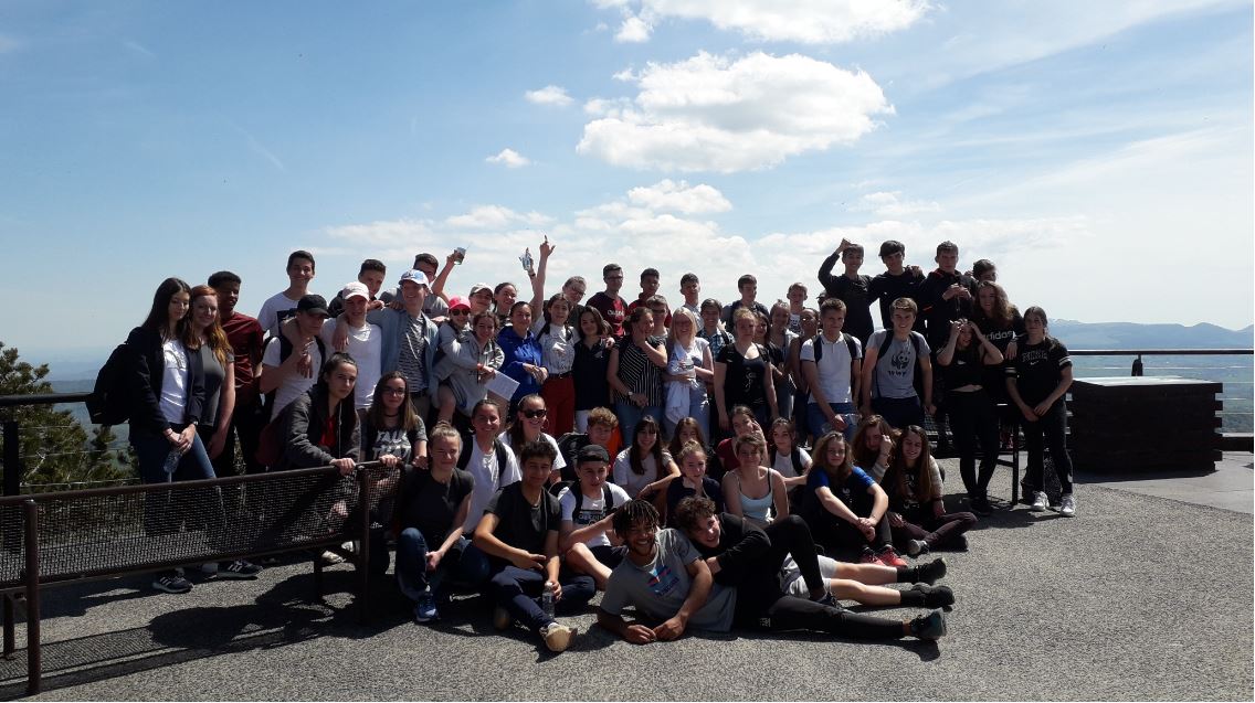 Vendredi 23 mai, les élèves de 1ère scientifique du lycée ont découvert une partie de la géologie de l’Auvergne en se rendant notamment dans la Carrière de Gandaillat , sur le site de la "Roche de Sauterre" et en montant l’incontournable Puy de Dôme par le chemin de Muletiers. Ils ont ainsi pu découvrir un extrait de la géodynamique complexe de la région, ne se résumant pas seulement à un épisode magmatique . Ce fut aussi l’occasion pour beaucoup de préparer indirectement leur futur voyage géologique en Lozère prévu à la prochaine rentrée de septembre.