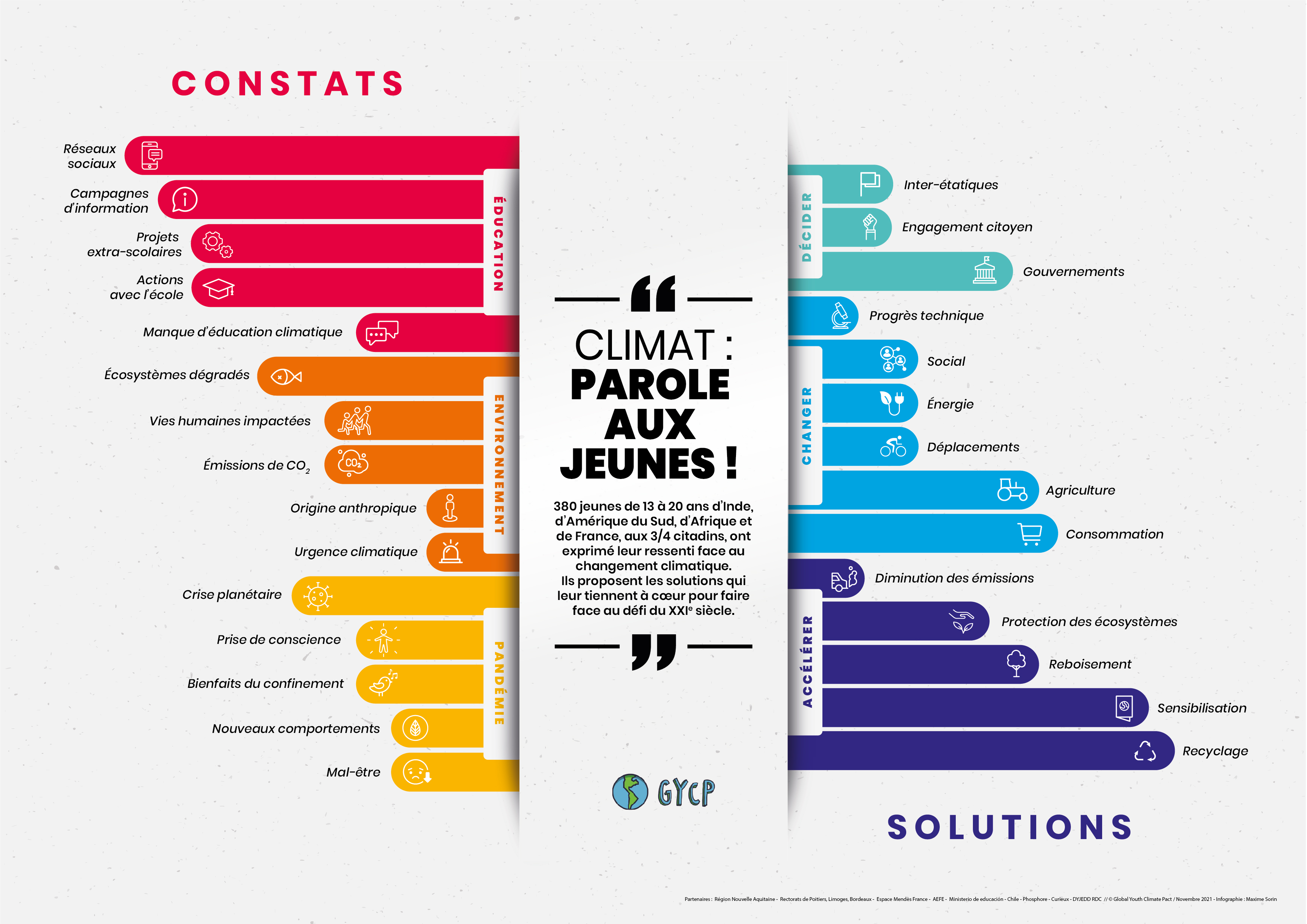 Fin octobre, les éco-délégués du lycée ont participé à un atelier leur permettant d’exprimer leurs ressentis et de proposer des solutions pour atténuer et s’adapter au réchauffement climatique actuel sans précédent. En amont ils avaient recueilli les idées de leurs camarades de classe et ont ainsi pu représenter l’ensemble des lycéens. En partenariat avec le "Global Youth Climate Pact", deux documents ont ainsi pu être établis et utilisés lors de la COP26 qui s’est tenue à Glasgow début novembre. En effet, nos lycéens creusois ont pu unir leurs idées à celles d’autres jeunes de 13 à 20 ans habitant en Inde, en Afrique ou encore en Amérique du Sud.