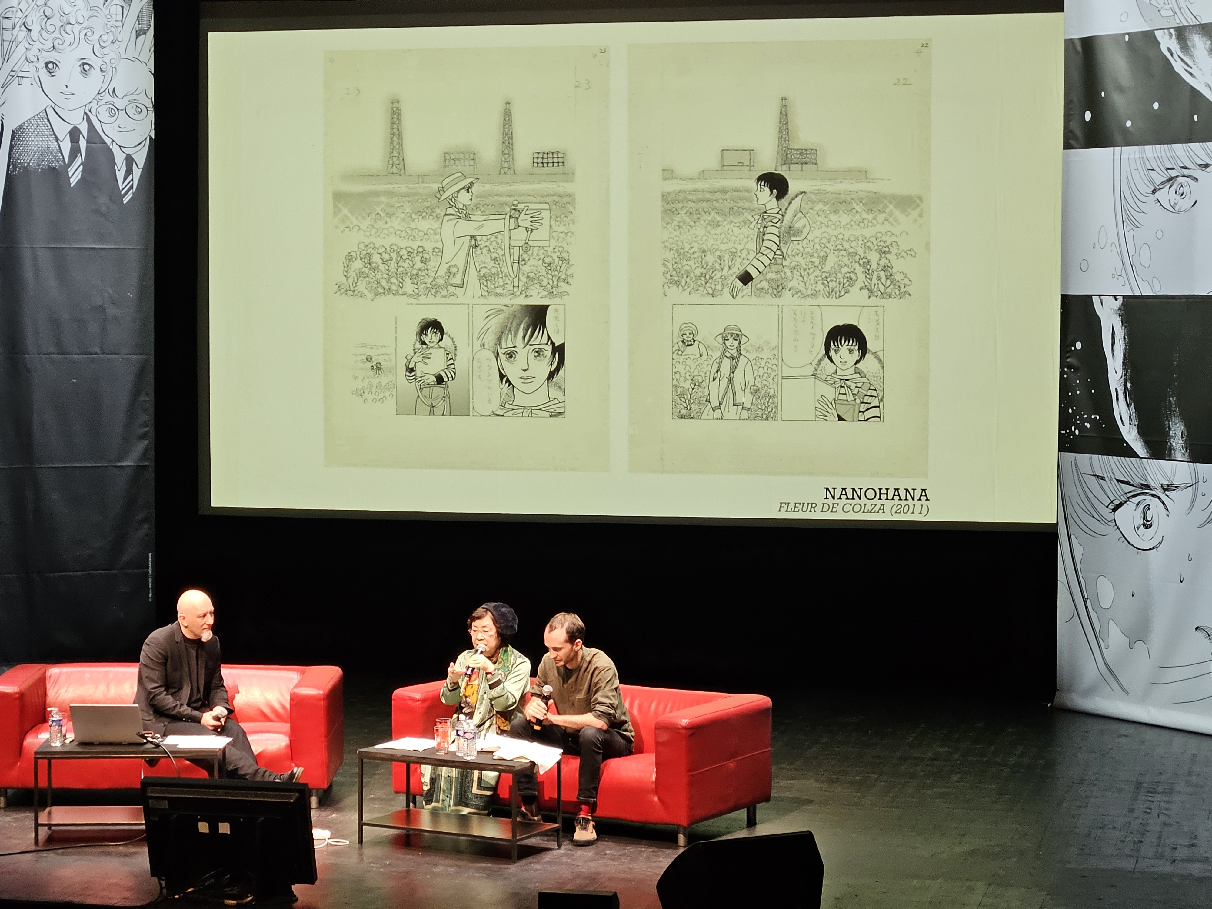 Elle a notamment expliqué ce qui l’a menée à dessiner Fleur de colza, manga consacré au traumatisme après la catastrophe de Fukushima.