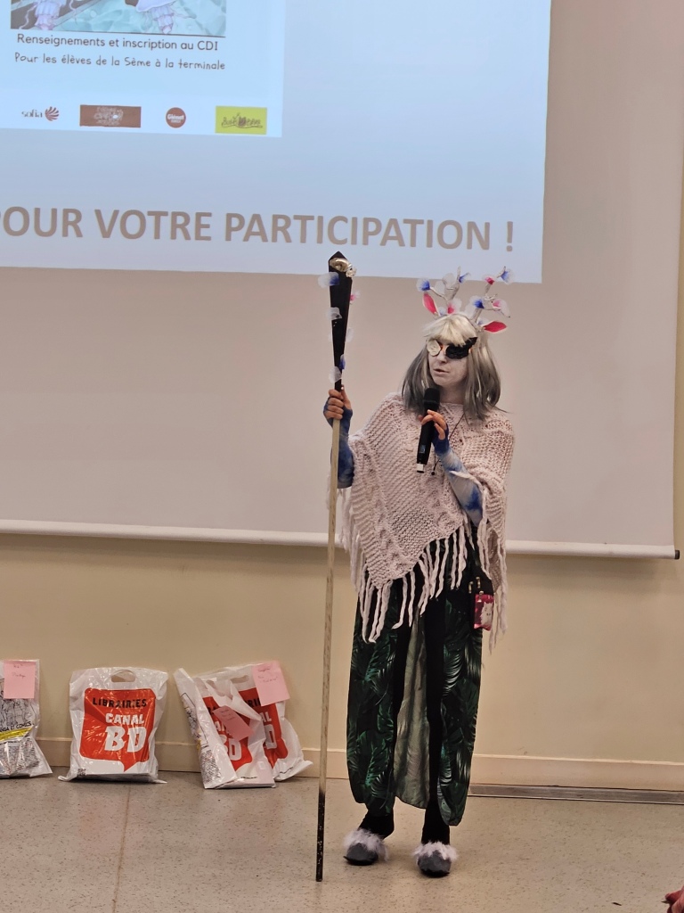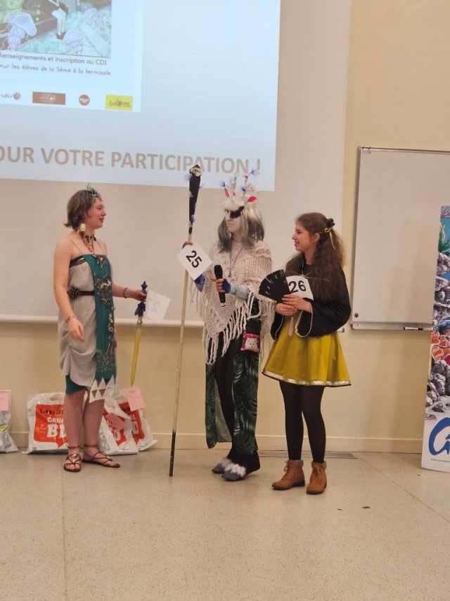 Après la pause déjeuner, le passage des plaidoyers et le défilé des cosplays ont commencé. Merci à Sarah, Enzo, Denis, Evan, Louise et Mélody pour leur participation et pour tout le travail d’écriture et de préparation.