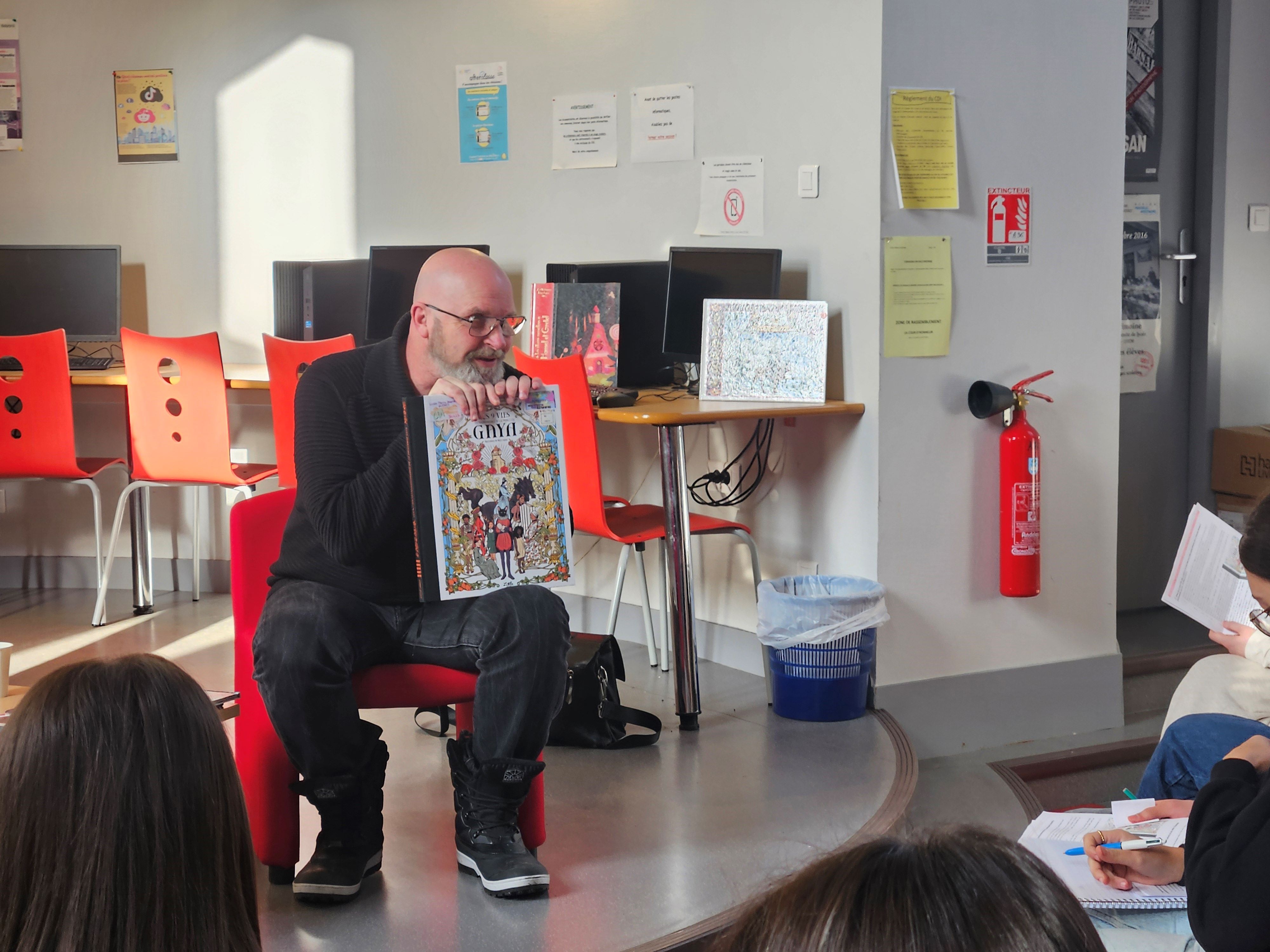 Le mercredi 12 février, les élèves de Mme Réjaud ont rencontré l’illustrateur, Régis Lejonc. Il est à l’origine de la création du livre sélectionné pour le Prix De Livre en Livre, Les 9 vies extraordinaires de la princesse Gaya.