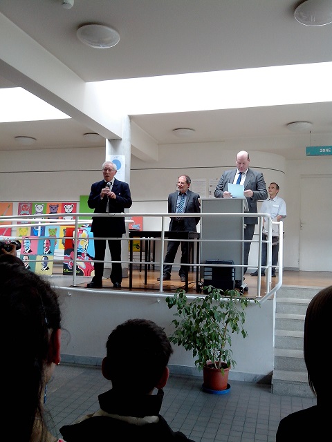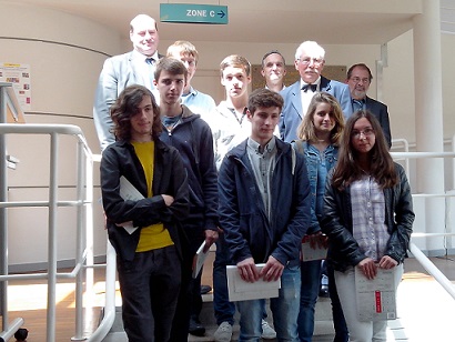 Ce dernier, aux côtés de M. le Recteur et de M. Brucker (IPR de Mathématiques), a remis les prix aux lauréats du concours, ainsi qu’aux jeunes primés du tournoi Mathématiques Sans Frontières.