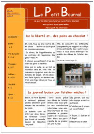 Le journal lycéen donne la parole aux élèves et se fixe comme principal objectif de rendre compte de la vie au lycée.